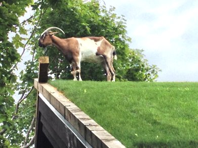 the goats on the roof of Al Johnson's Restaurant